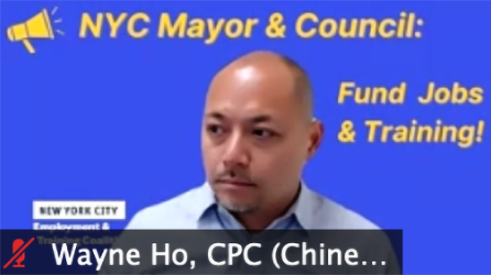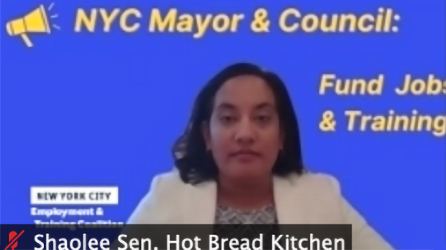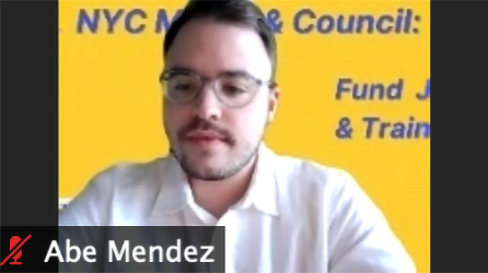In the final days of budget negotiations, we held a virtual rally with 100+ attendees, a dozen speakers, and featured remarks from Council Members Helen Rosenthal, Adrienne Adams, Robert Cornegy Jr., and Barry Grodenchik to urge Mayor de Blasio and the New York City Council to increase investments for workforce development training providers and clients. Attendees also heard from business partners, service providers, and program participants on the urgent need for resources to support training and employment programs as a key strategy of the pandemic recovery.